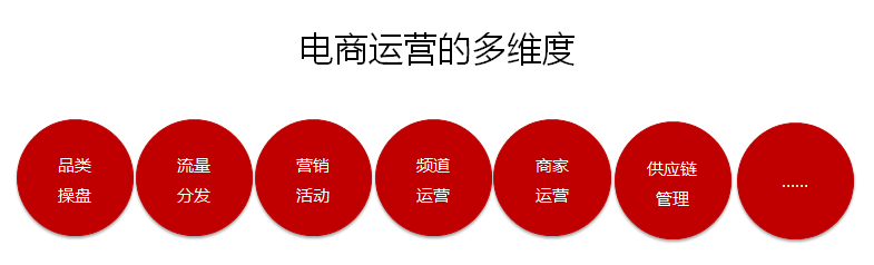 众所周知,在互联网运营、电商运营的体系里,包括了很多维度,例如:品类/产品的销售操盘、流量分发、营销活动、频道运营、商家运营、供应链运营管理、用户运营、内容运营、数据运营……等等;