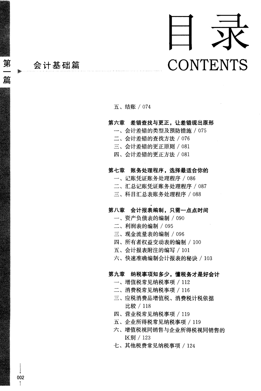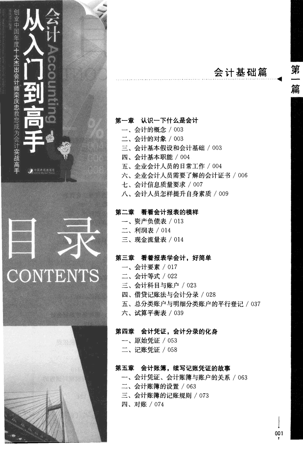 本书在框架结构和讲述方法上突破了一般会计图书的固有模式,充分考虑会计人员 的特点,针对广大会计人员的不足,根据广大会计人员的需求,创新地采用“点、线、面” 的思路,将本书分为三大部分: 第一部分会计基础篇,采用“看着报表学会计”的方式,带您轻松练就一身扎实的会计 基本功; 第二部分会计核算篇,将带您亲身体验各个会计岗位的实际业务处理; 第三部分会计实战篇,将带您实战操作,让您快速轻松成为一名优秀的会计人员。