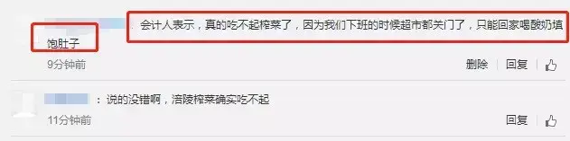 有会计评论:真的吃不起榨菜了,因为我下班的时候超市都关门了,只能回家喝酸奶填饱肚子~