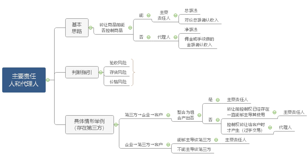 第三十四条 企业应当根据其在向客户转让商品前是否拥有对该商品的控制权,来判断其从事交易时的身份是主要责任人还是代理人。企业在向客户转让商品前能够控制该商品的,该企业为主要责任人,应当按照已收或应收对价总额确认收入;否则,该企业为代理人,应当按照预期有权收取的佣金或手续费的金额确认收入,该金额应当按照已收或应收对价总额扣除应支付给其他相关方的价款后的净额,或者按照既定的佣金金额或比例等确定。