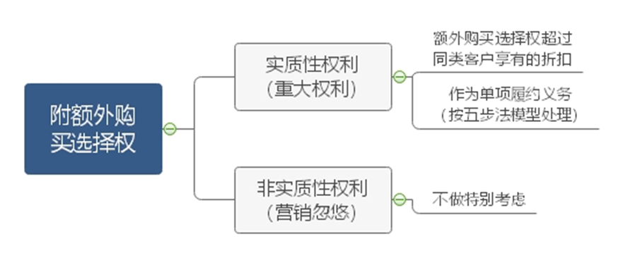 客户虽然有额外购买商品选择权,但客户行使该选择权购买商品时的价格反映了这些商品单独售价的,不应被视为企业向该客户提供了一项重大权利。