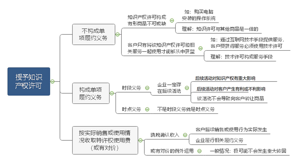企业向客户授予知识产权许可,同时满足下列条件时,应当作为在某一时段内履行的履约义务确认相关收入;否则,应当作为在某一时点履行的履约义务确认相关收入: