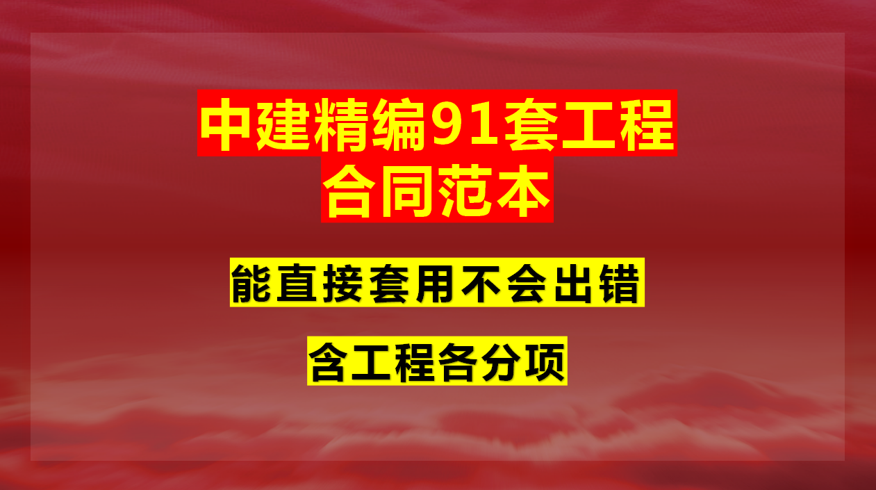 大家有没有被编写工程合同难倒过?我就经常被整得头大,工程合同内容别看就几个字,里面的含义可大着呢,错几个字,那就变了个意思,直接就不构成法律效益了。所以,我一直不敢乱写,也写不好。幸亏后来有了一套中建的91套工程合同范本!