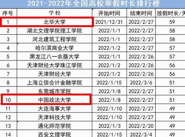 但在各大高校寒假放假安排当中,我们可以看到北华大学放假日期为2021年12月31日,而开学日期暂定为2022年2月27日,此次寒假放假时长竟然高达59天,将近两个月的寒假,这所学校的学生究竟是哭还是笑呢?北华大学作为吉林市一所普通本科院校,谁都不会想到他竟然是200多所学校当中放假时间最长的一所,放假时间过长,让学生们高兴的同时也会带来影响,尤其是学业方面。