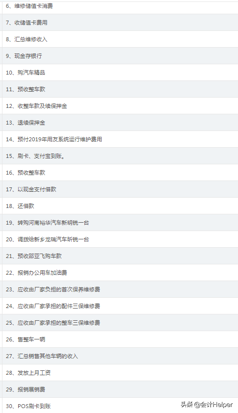 最近很多人都在找工作,财务人员在找工作时,HR最看重的就是你有没有真账实操经验了。现在4s店行业发展得很不错,因此也有不少财务出身的小伙伴也都会选择这个行业。我有一个小伙伴她要跳槽到4S店做会计,但是没什么经验,她就问我有没有这方面的资料可以参考学习一下。我就厚着脸皮向我们经理要了份汽车4S店实操资料,内含64笔真账业务处理,就这样发送给了她,现在没事也不找我闲聊了,正抱着资料学习呢,说是,下个月要去面试。