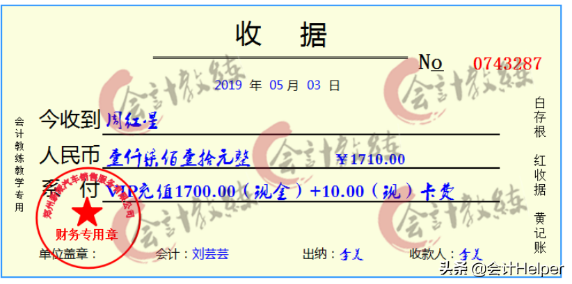 5月3日收周红星储值费用1700.00元,另收储值卡工本费10.00元(记未开票收入)。