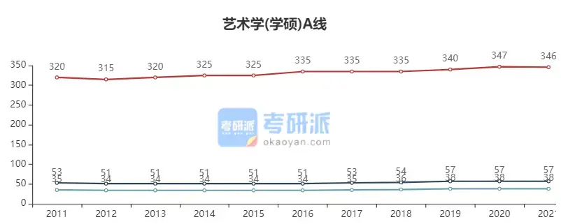 纵观近5年的艺术学和艺术国家线可知,分数线一直处于上涨趋势。具体来说,2017年-2019年趋于上涨趋势,2019年-2021年保持平稳。