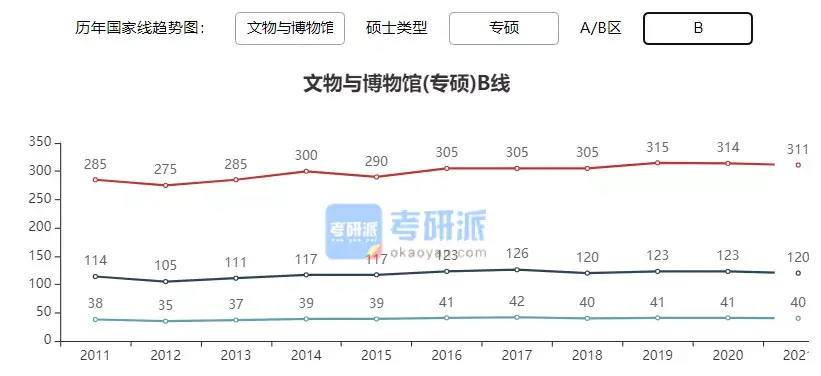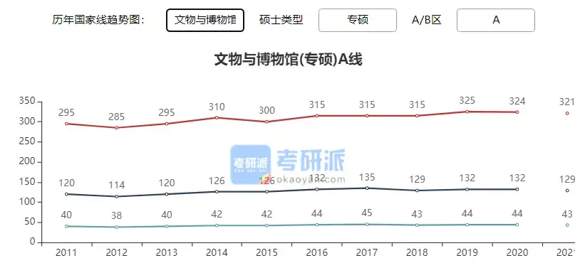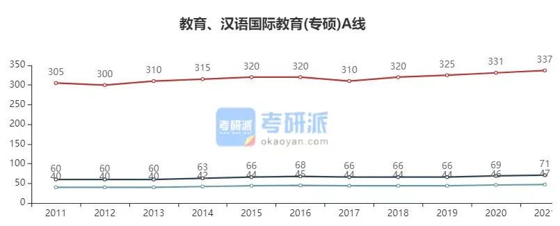 通过历年国家线可知总分在2017年-2020年处于一种涨幅趋势,2021年处于降幅趋势。