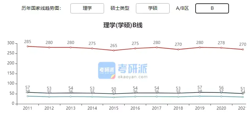 理学的一级学科很多,考试的难度也越来越大,报考考生越来越多,加之理学大部分专业都不涉及到数学科目,近2年理学国家线趋势降幅趋势。2020年的288分到2021年的280分,降幅为8分,纵观其他因素,预测今年的理学国家线会出现与去年持平或者是涨幅的趋势,降幅的可能性是非常小的。