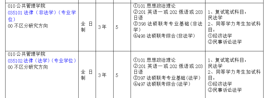 2021年法律(法学)、法律(非法学)专硕均已经停止招生。2020级是最后一届硕士生(下图为2020年硕士招生目录)。