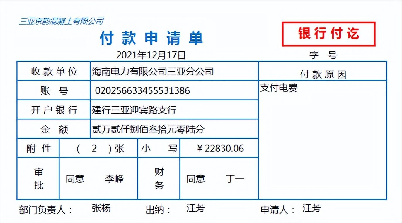 12月17日,支付电费22830.06元,取得增值税普通发票,出纳以银行付讫。
