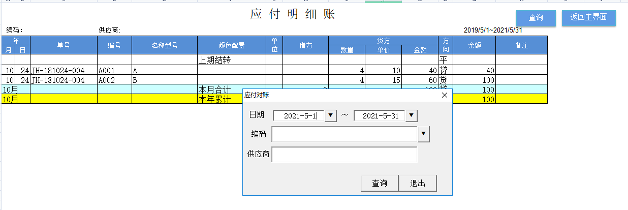 从主界面上看,一共是5个模块!分别是基础信息设置(比如:商品基础信息,供应商基础信息等),出入库管理(进货单和出库单),财务管理(日常收支等),往来查询以及系统设置等五个模块的内容!