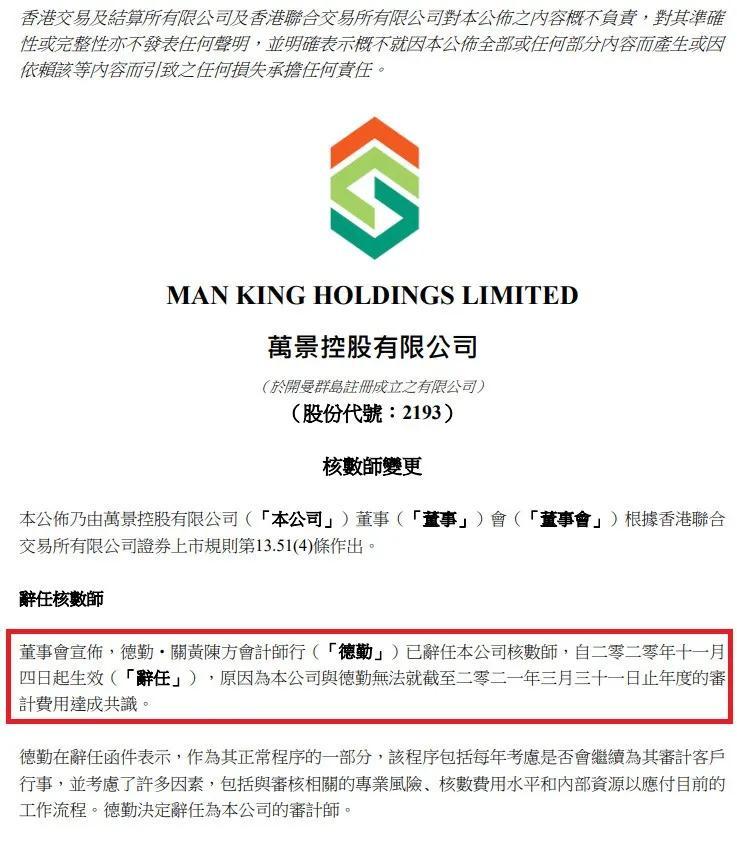 之后,还有上海梅林、骏马科技、志高控股、万景控股、立基工程等公司,被德勤相继辞任。