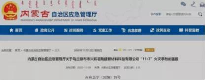 2020年11月7日22时35分左右,乌兰察布市兴和县瑞盛新材料科技有限公司石墨化车间3-1炉发生喷炉引发火灾事故,造成15人不同程度受伤,其中2人重伤,13人轻伤。