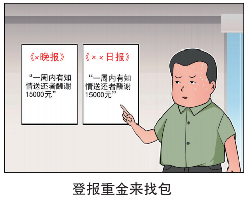 李某在《今晚报》和《天津日报》上刊登寻包启事,声明“一周内有知情送还者酬谢15000元”。