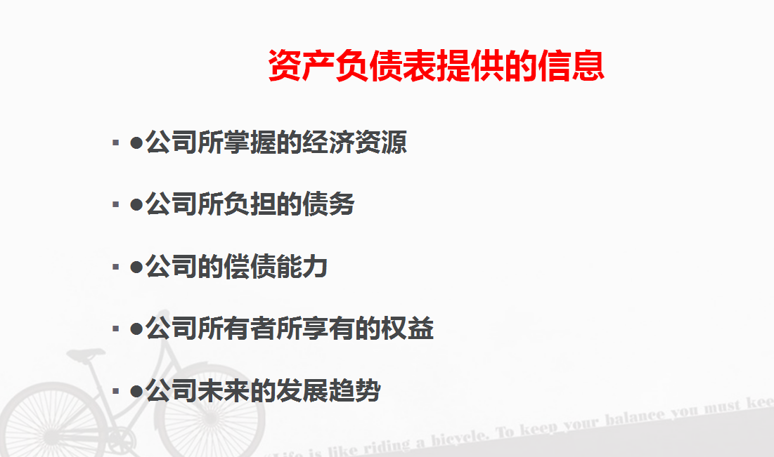 2. 资产负债表提供的信息