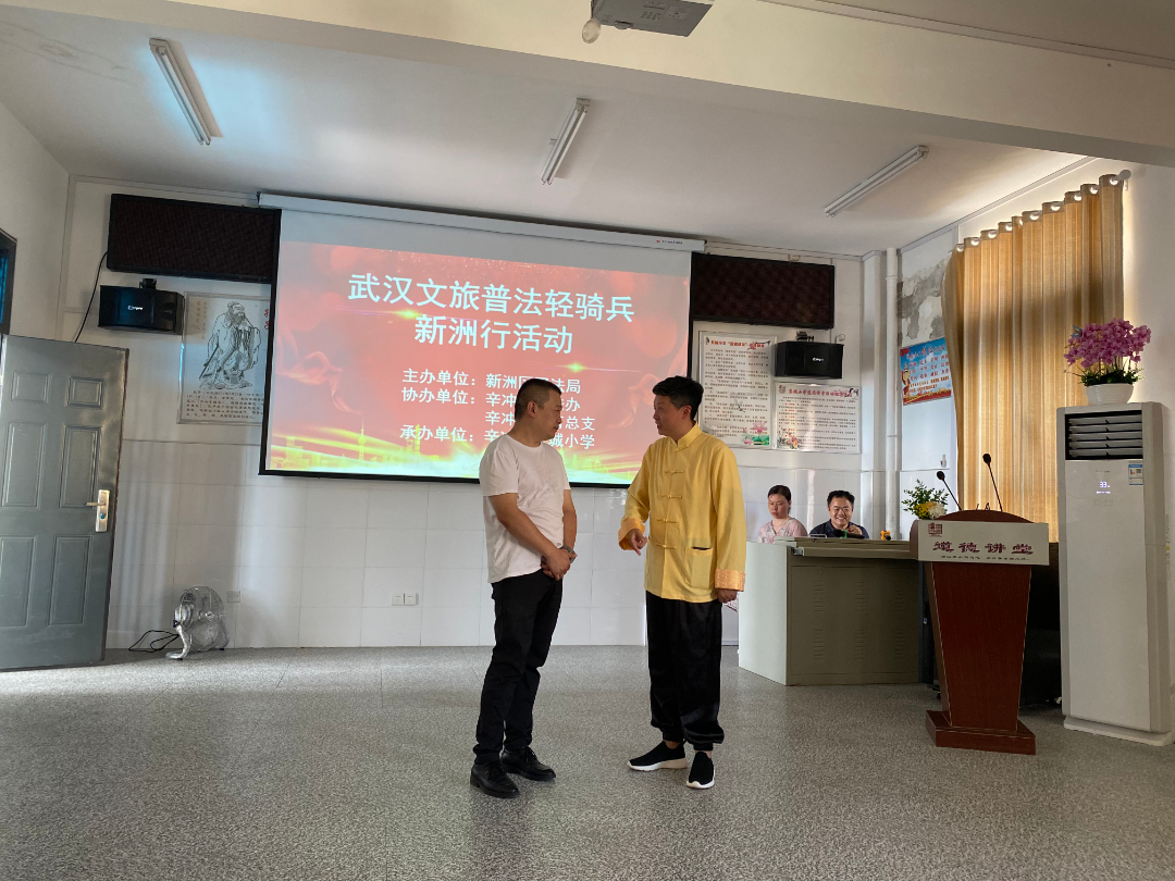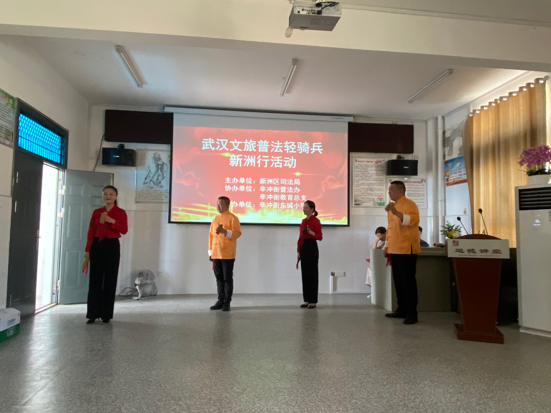 近日,为落实武汉文旅普法轻骑兵基层行活动要求,按照市司法局、市文旅局统一部署,结合农村青少年普法的现实状况和实际需求,新洲区司法局在辛冲街举办“武汉文旅普法轻骑兵新洲行”暨“法律进学校”活动,东城小学一百余名师生参与活动。