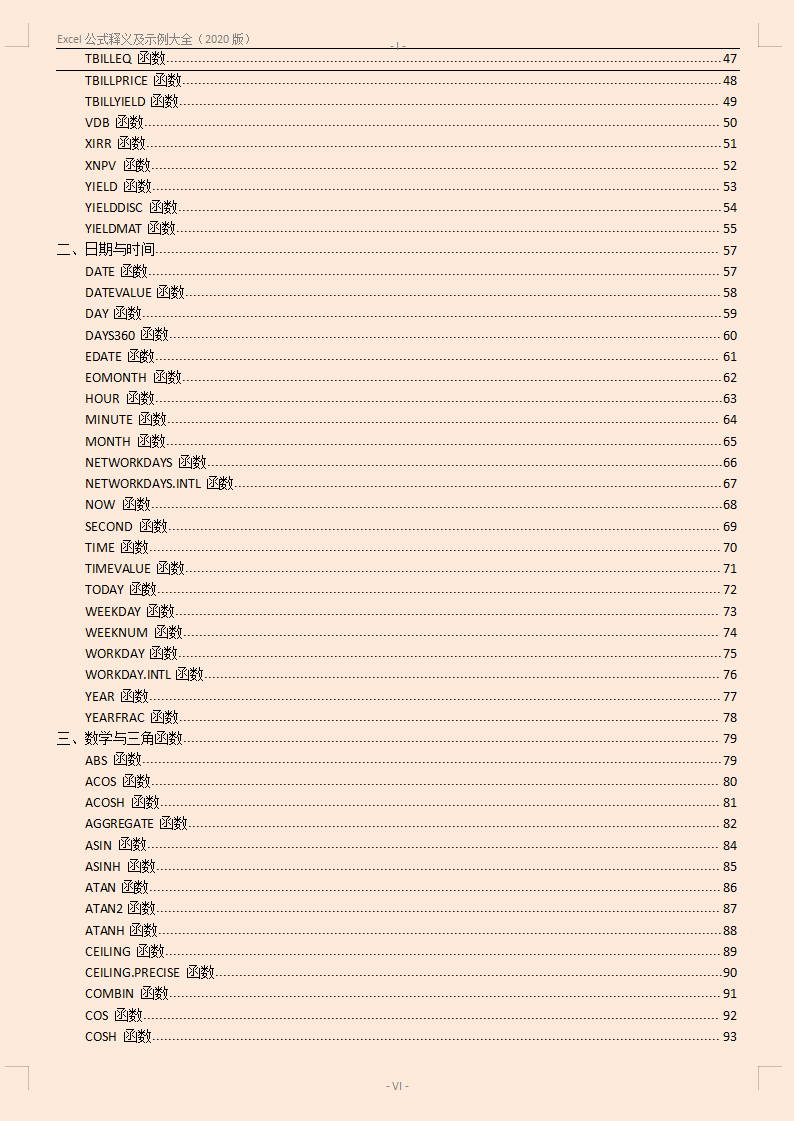 ……由于函数公式内容比较多,汇总在一起了。篇幅原因,今天就不在这里详细说明了。