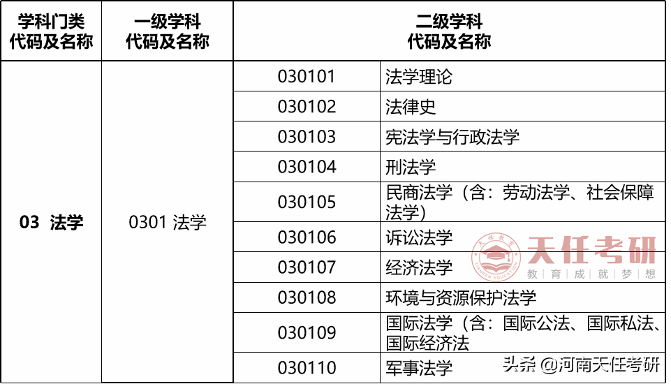 法学下面一共有10个二级学科: