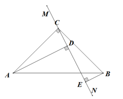 因为∠CAD+∠ACD=90°,∠BCN+∠ACD=90°,可得∠CAD=∠BCE,另一对已经找到,那就可以通过AAS证明,△ADC≌△CEB,也可以得到,AD=CD+DE=BE+DE,即DE=AD-BE