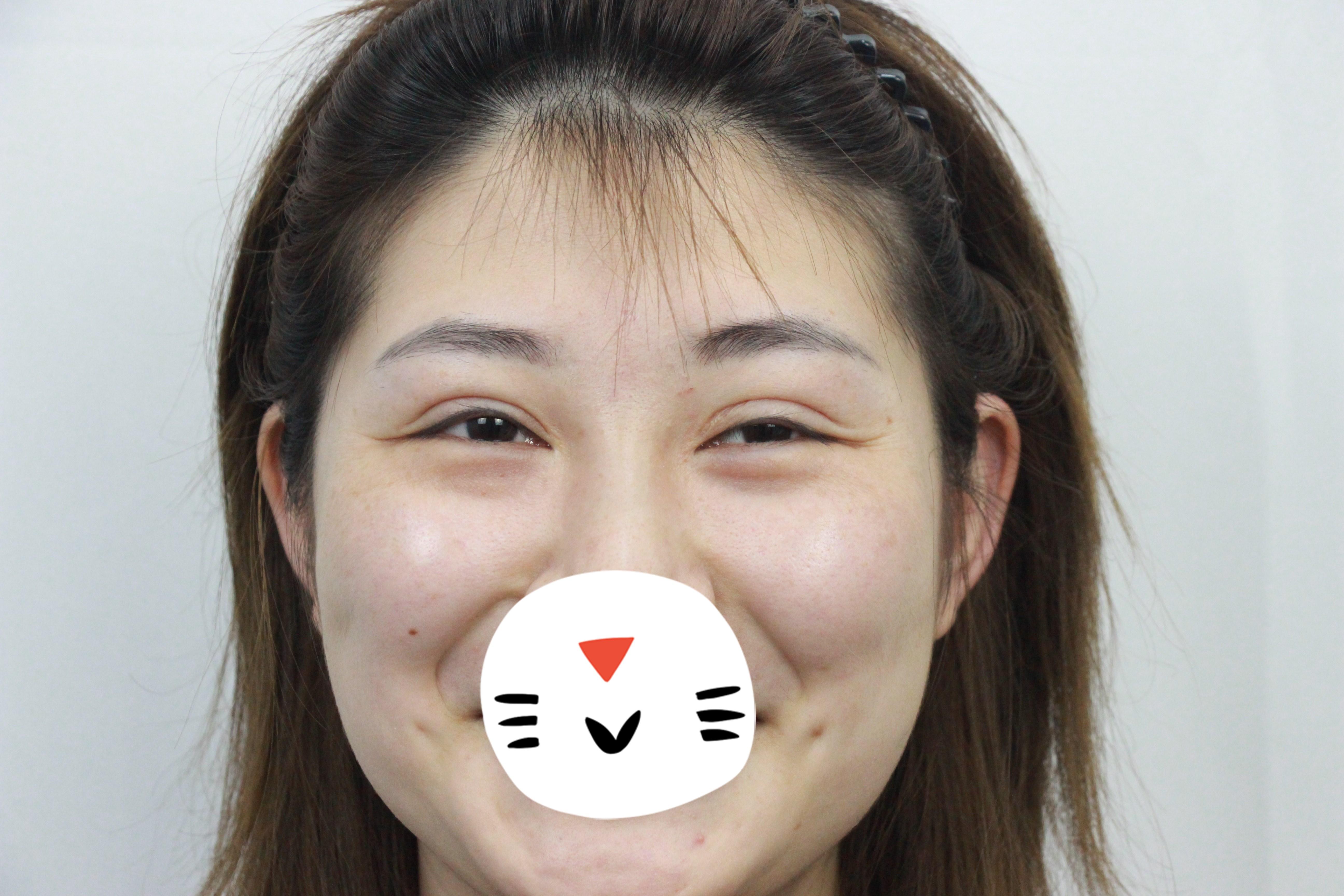 姑娘修复前形态不好看(平行形),这样的双眼皮形态对于五官比例较小的人不好看,主要表现是眼睛无神,双眼皮不自然。