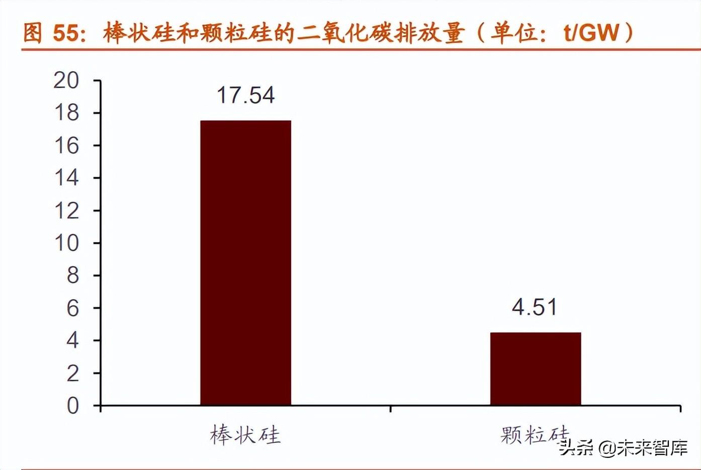 棒状硅占市场主导地位,颗粒硅市占率逐步上上。目前主流的多晶硅生产工艺为改良西门子法和硅烷流化床法,产 品形态分别为棒状硅和颗粒硅。2021 年硅烷法颗粒硅市占率达到 4.1%,棒状硅占 95.9%。据中国光伏行业协会预 测,未来颗粒硅市占率将缓慢逐步上升,但棒状硅依然占据硅料市场主导地位。