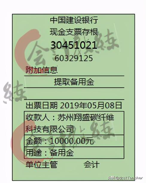 05月08日,出纳签发一张现金支票用于提取备用金,金额为10000.00元。