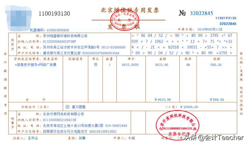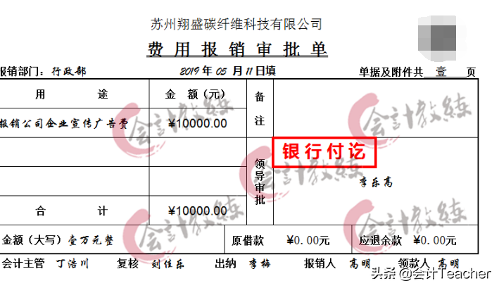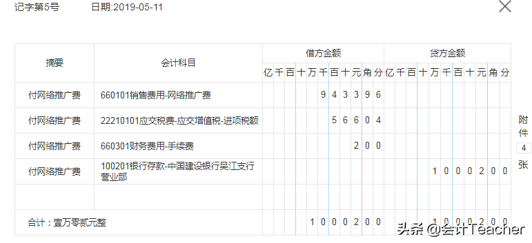 05月11日,报销百度推广费用10000元,通过网银支付。
