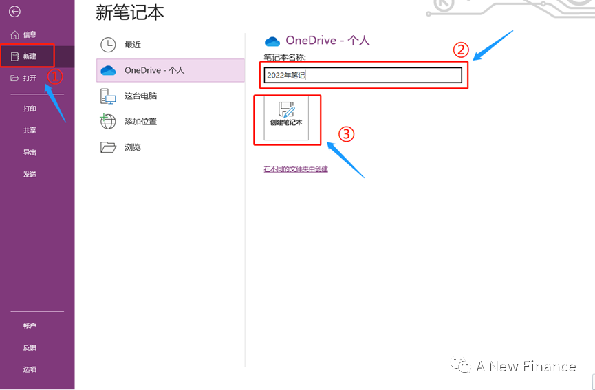 流程:打开OneNote → 笔记命名 → 点击创建笔记本
