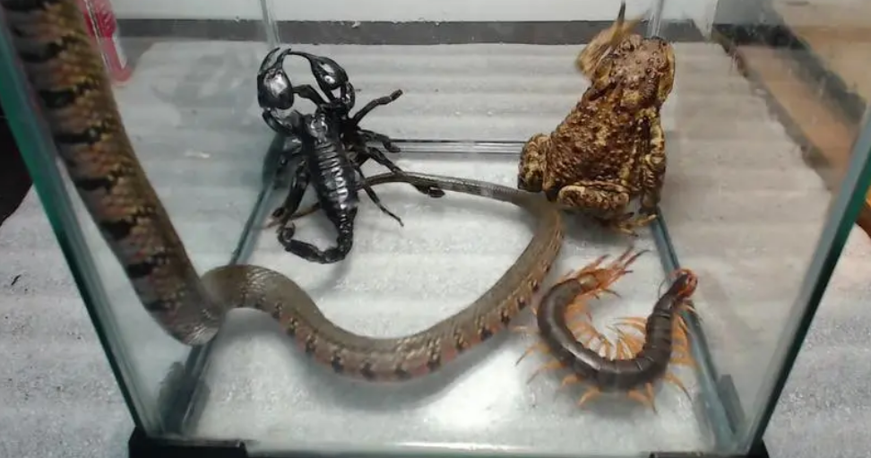 放进的毒物足够多之后,行刑还需要一个引子,接着他们就会将一串鞭炮点燃扔入其中,不得不说这种刑罚确实残忍,这些扔进去的动物本来多数都是冷血动物,不好动,但是扔进鞭炮效果就不一样了。