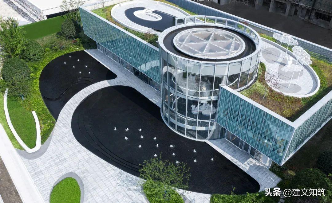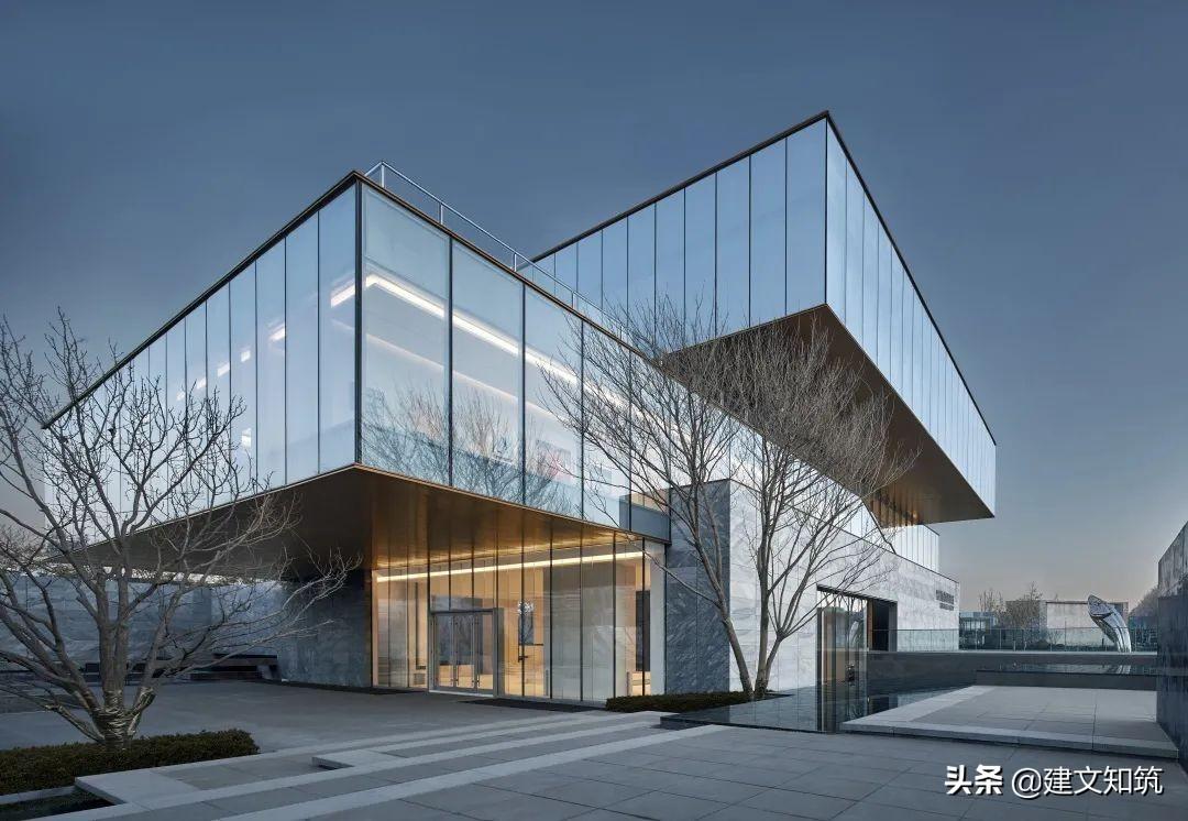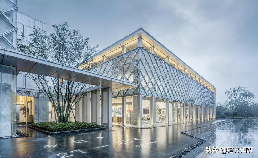 售楼处延续了项目的精致特质,以一个两层通高的商业入口形象凸显整体的昭示性,通过丰富的空间层次感、独特的彩釉玻璃肌理,在转角处让建筑与周围环境更好地对话互动。