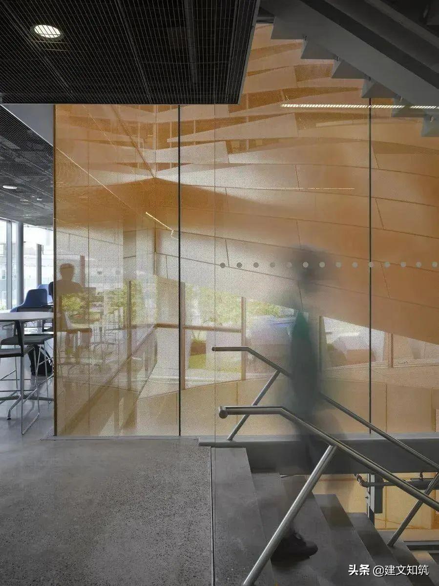 墨菲西斯新作,康奈尔大学比尔及梅琳达盖茨教学楼,室内透明玻璃、彩釉玻璃的复合使用。