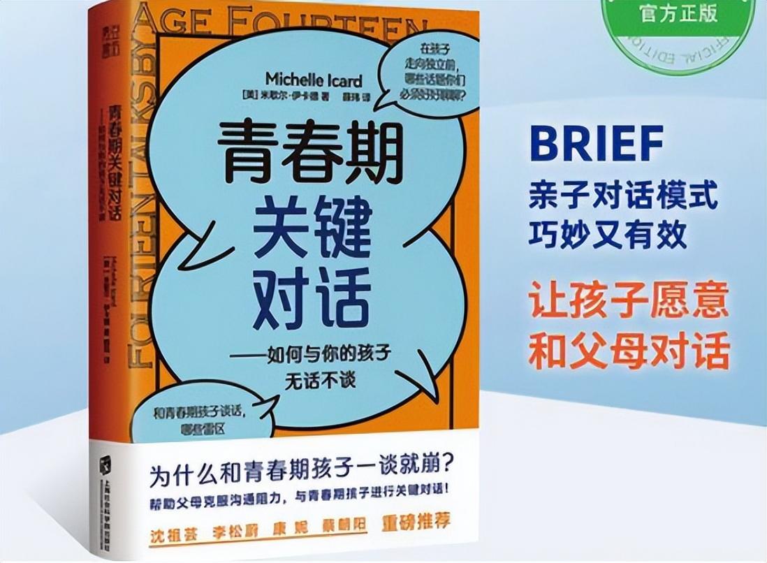 今天跟大家推荐的美国知名教育家、作家米歇尔.伊卡德写的《青春期关键对话》这本书,就讲到了一个非常有效的青春期亲子沟通方法——BRIEF对话模式。