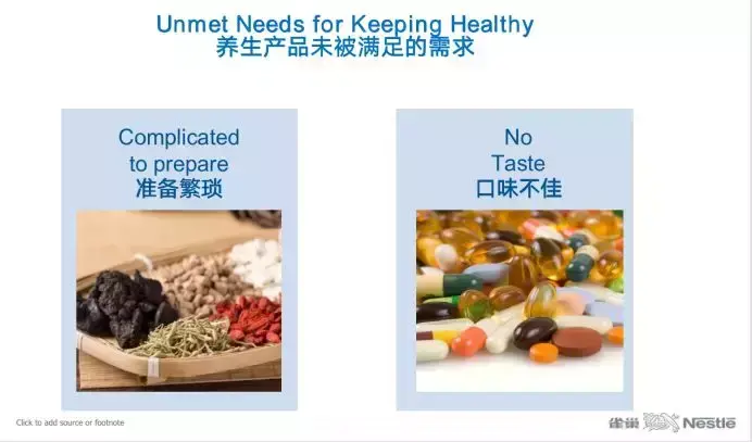事实上,雀巢做了很多前沿的研究,但有些产品因为各种原因没有上市,比如中草药产品,雀巢研究了十多年配方,在这之前,没有被任何一个事业部使用,所以孵化器就推出了这样一个品牌。