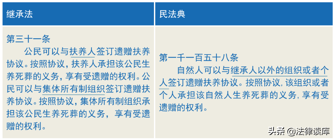 在这种老龄化加速、出生率降低、空巢、孤寡老人养老问题日益凸显的背景下,“以房养老”等新型养老模式也应运而生,而遗赠扶养协议制度让这类老人有了“老有所依”的法律保障。本次民法典则进一步将扶养人的范围由原先的扶养人和集体所有制组织扩大为继承人以外的组织或者个人。不仅保障“老有所依”,同时也满足了养老形式多样化需求,符合我国人口增长速度放缓、人口结构变化,劳动年龄人口总量减少的现实情况[8]。