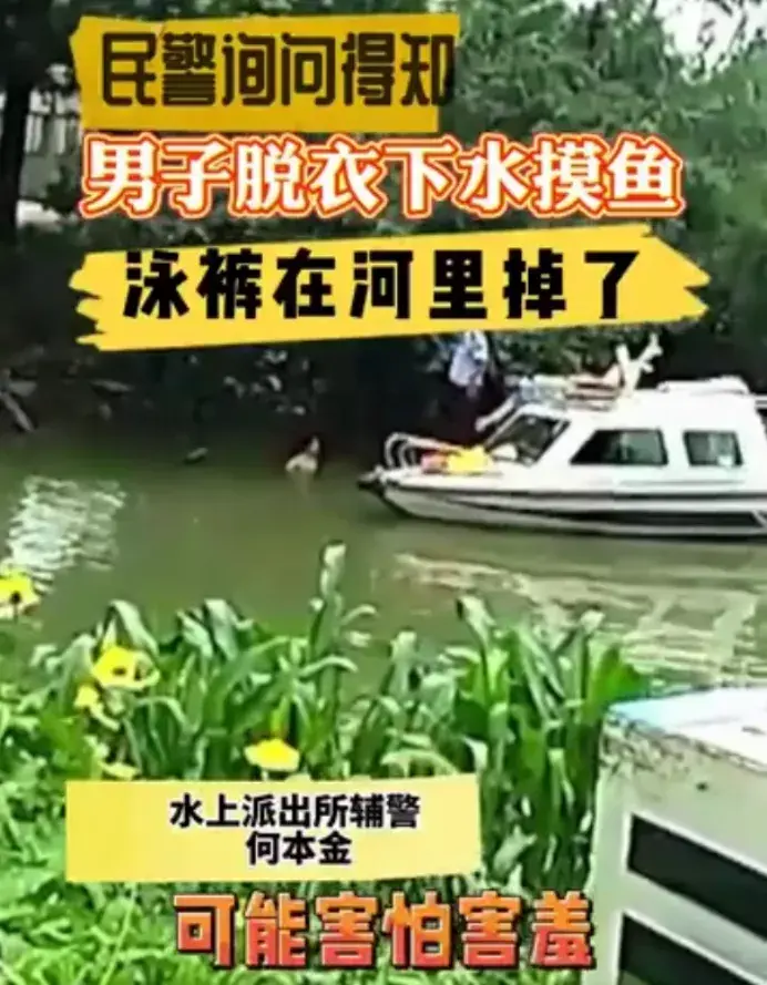1、男子下河泳裤遗失不敢上岸 近日,上海嘉定,一男子赤裸上身在河里游来游去,迟迟不肯上岸。村民报警后,民警驱船靠近,男子尴尬道出实情:自己的泳裤漂走了。民警随后疏散围观村民,为他找来衣物将其“解救”上岸。(@中国警方在线)