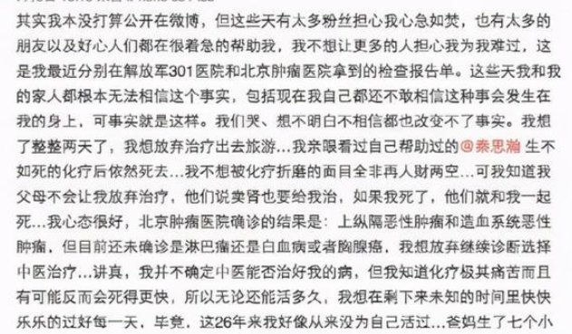 去看中医之前的徐婷,还常常面带微笑、气色红润地和粉丝分享自拍。而后不到半个月的时间,她的社交平台上只剩下一张医院冰冷的仪器照片,和被疾病折磨的痛苦。