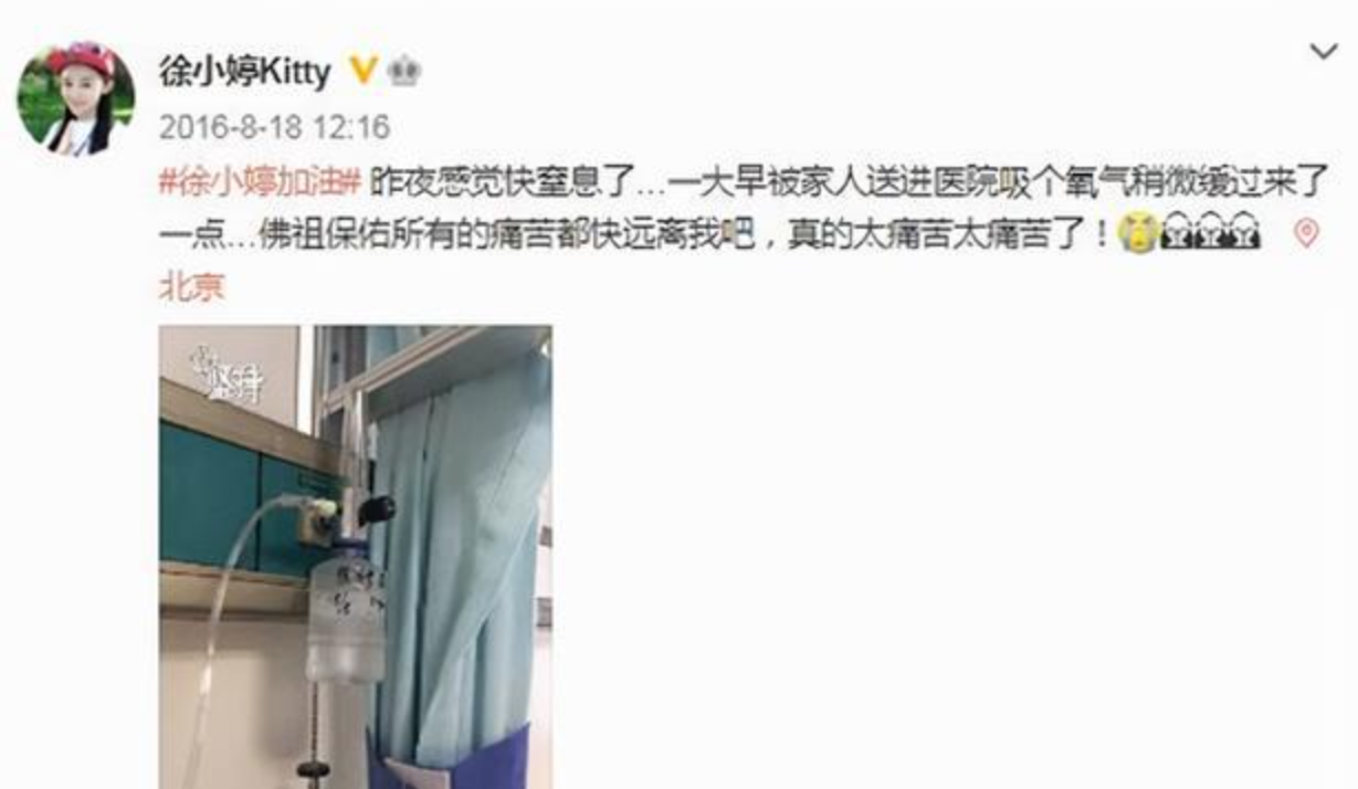 就这样,才二十出头的徐婷,就已经落下了一身疾病,除了剧组之外,她最常去的便是医院。