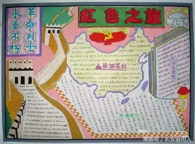 这个版型难度也比较高,属于升华型手抄报,通过回忆中国成立的历史路程,告诫当今人们珍惜幸福生活。