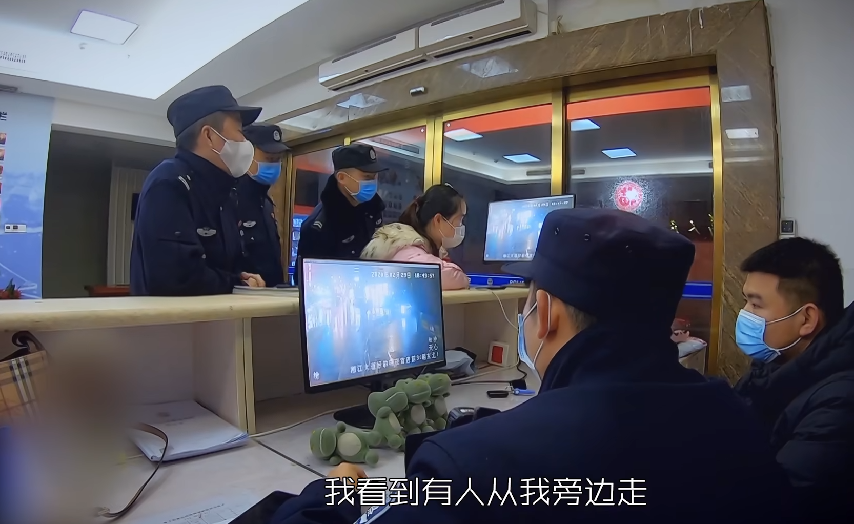 相比于这名男子激动的表现,粉衣女子在民警面前十分紧张,并且带着一丝惊恐未定的样子,但是她的描述却十分清晰,将事情很详细地陈述了出来。