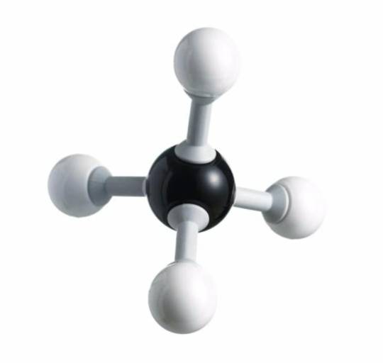 甲烷球棍模型 黑色球为碳原子 白色球为氢原子