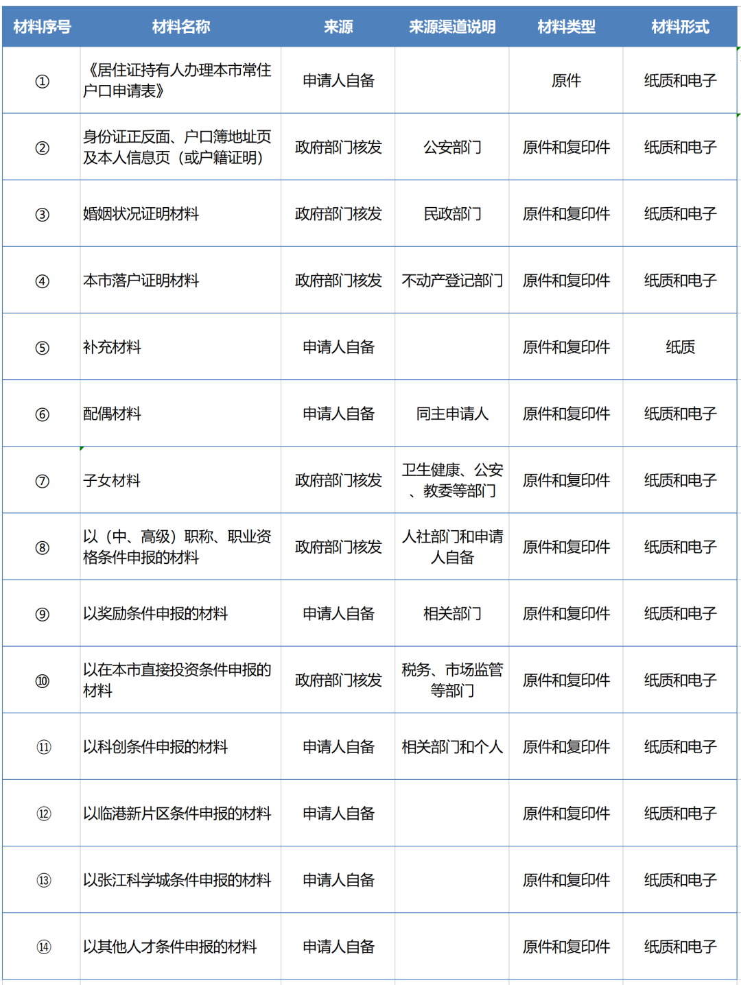1、《居住证持有人办理本市常住户口申请表》原件