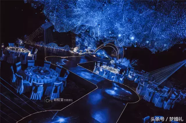 用星河散落来形容幸福感,一缕银河流入舞台,散落舞台形成爱的背景,漫天的流星点缀漆黑的夜空,远方的星球便是你们爱的归属。