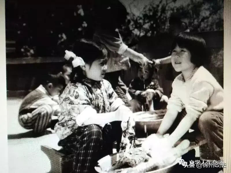 1984年幼儿园的孩子自己动手学习洗衣服