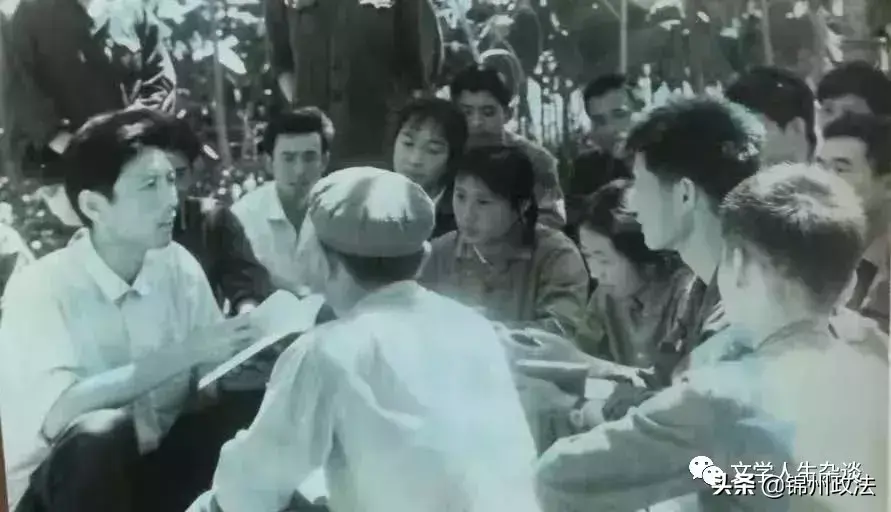 1975年机关人员参加农业劳动,休息时在地头学习的情景