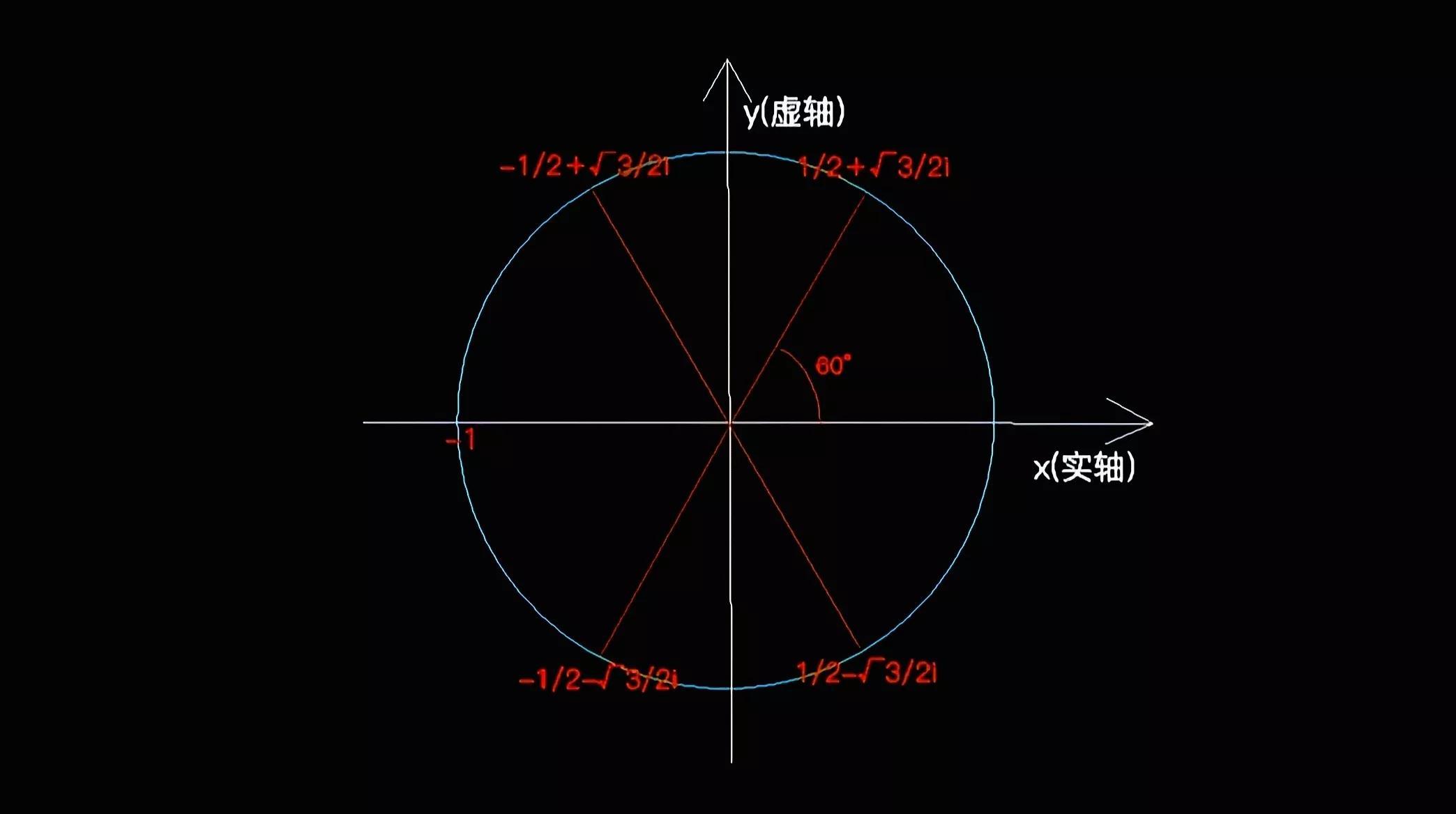 这只是60度角的一种情况,事实上,在图中只要是单位圆上的点均满足该规律。于是作一般性推广得到: