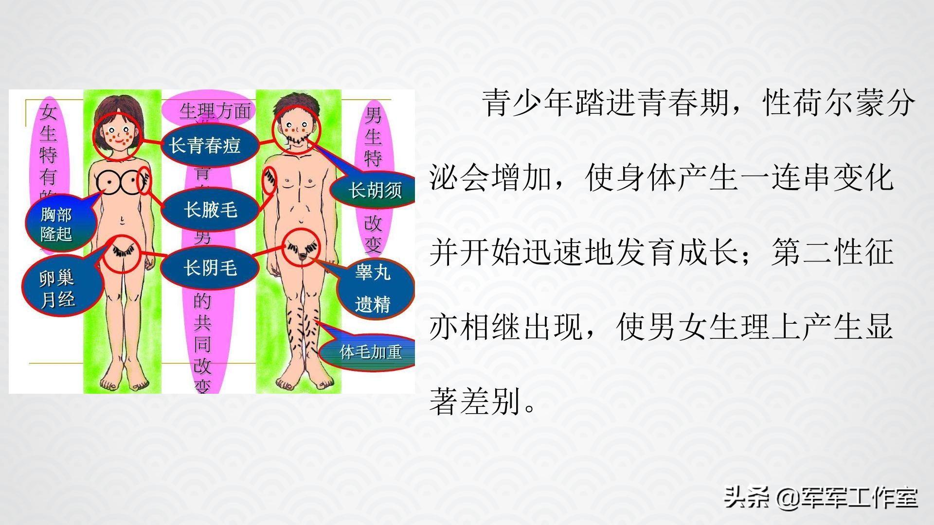 青少年踏进青春期,性荷尔蒙分泌会增加,使身体产生一连串变化并开始迅速地发育成长;第二性征亦相继出现,使男女生理上产生显著差别。