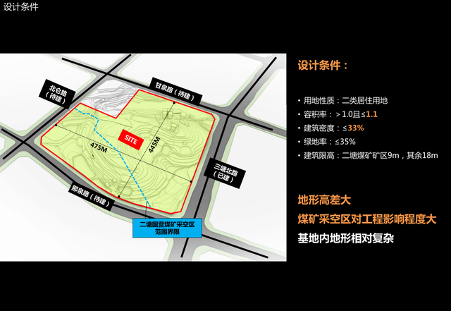 地形高差大;煤矿采空区对工程影响程度大;基地内地形相对复杂。