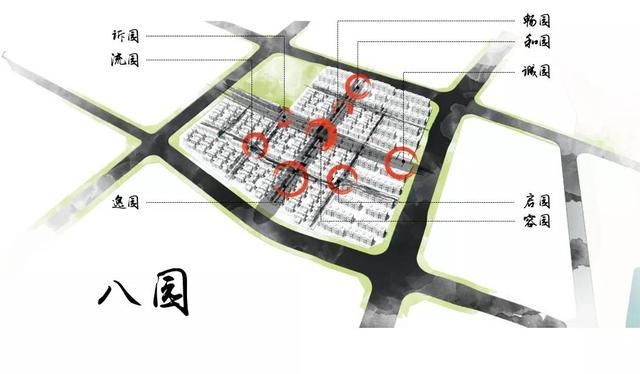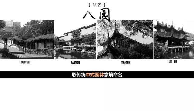 空间组合:八园十二坊,取传统中式园林意境命名。