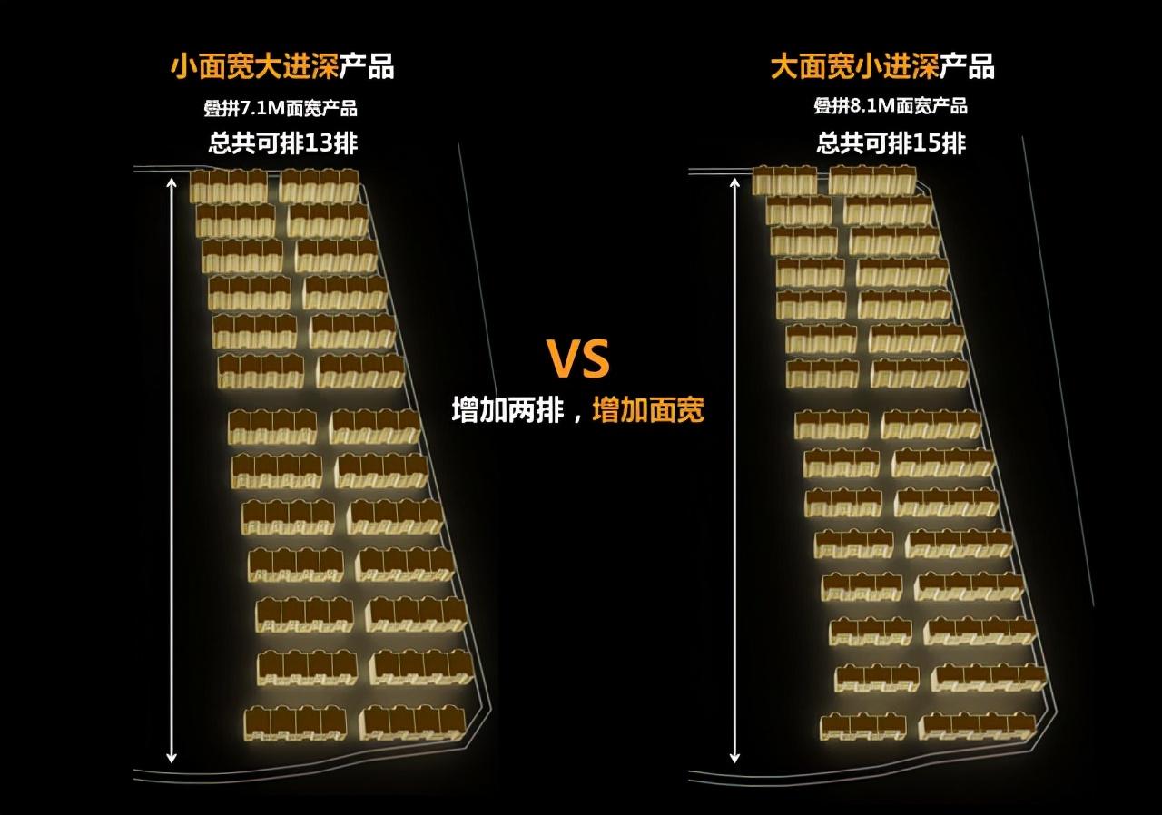 小面宽大进深产品——叠拼7.1M面宽产品,总共可排13排。